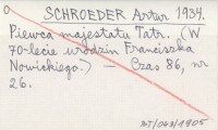 SCHROEDER Artur 1934 Piewca majestatu Tatr. (W 70-lecie urodzin Franciszka Nowickiego).