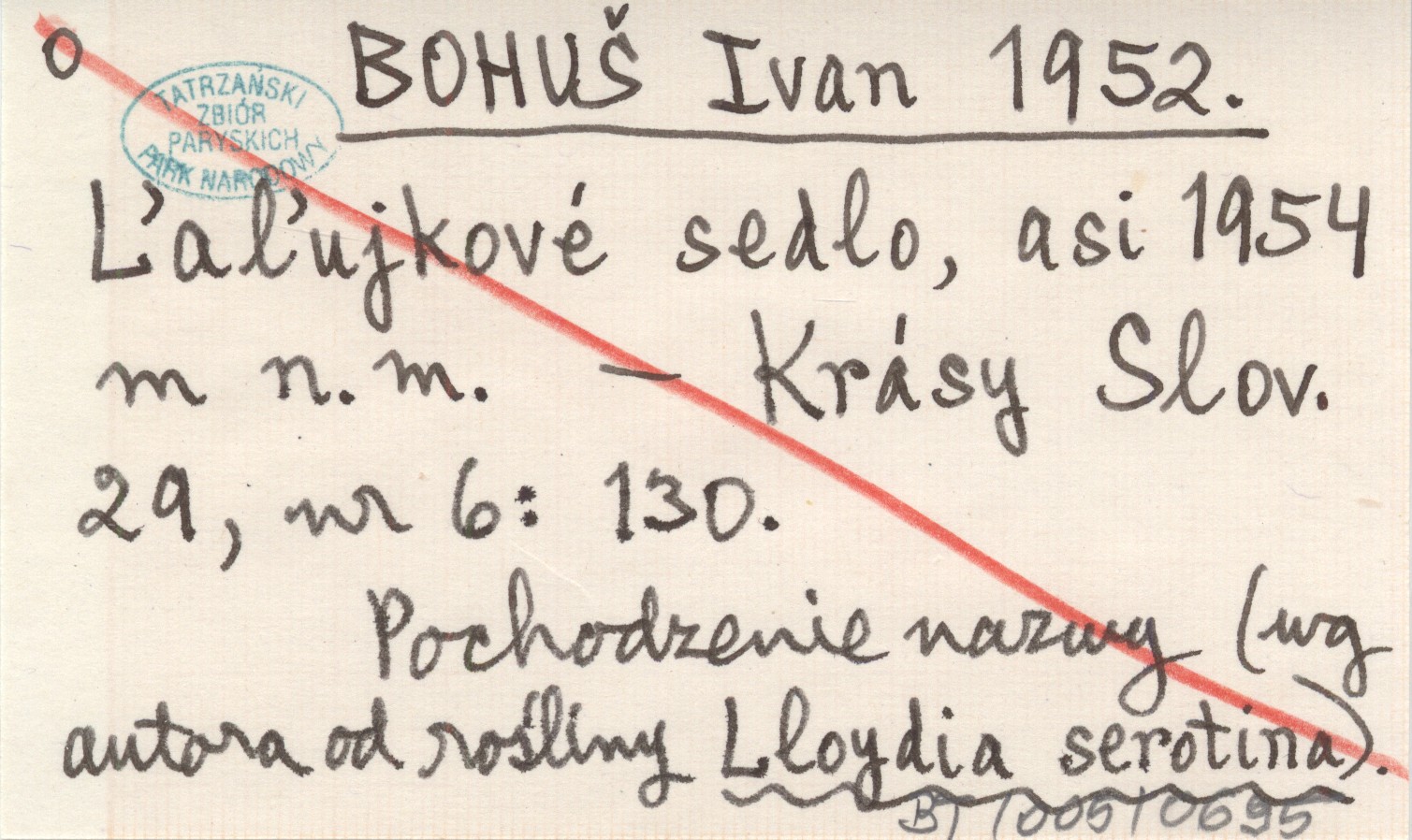 Krásy Slovenska, 29, nr 6: 130. Pochodzenie nazwy (wg autora od rośliny Lloydia serotina).