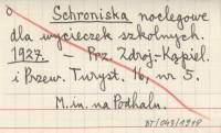 Schroniska noclegowe dla wycieczek szkolnych. 1927