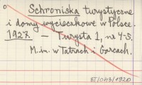 Schroniska turystyczne i domy wycieczkowe w Polsce. 1927