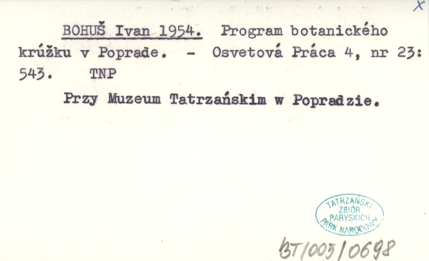 Osvetová Práca, 4, nr 23: 543. Przy Muzeum Tatrzańskim w Popradzie.