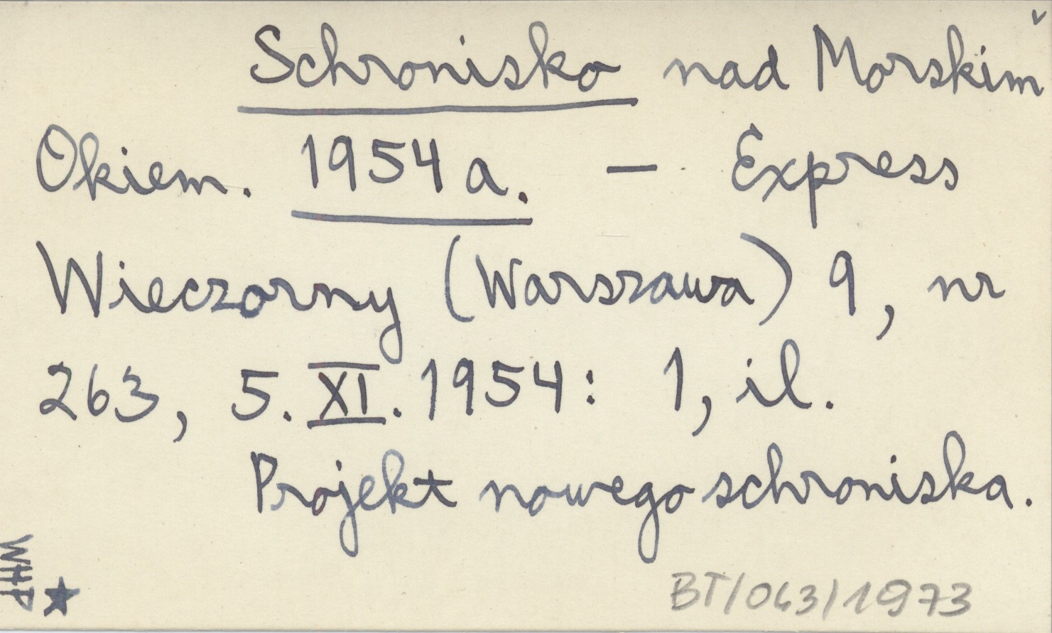 Express Wieczorny (Warszawa) , 9, nr 263, 5.XI.1954: 1, il. Projekt nowego schroniska.