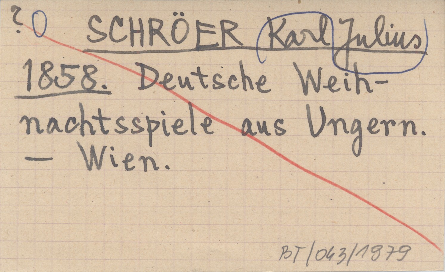 SCHRÖER Julius Karl 1858 Deutsche Weihnachtsspiele aus Ungern.