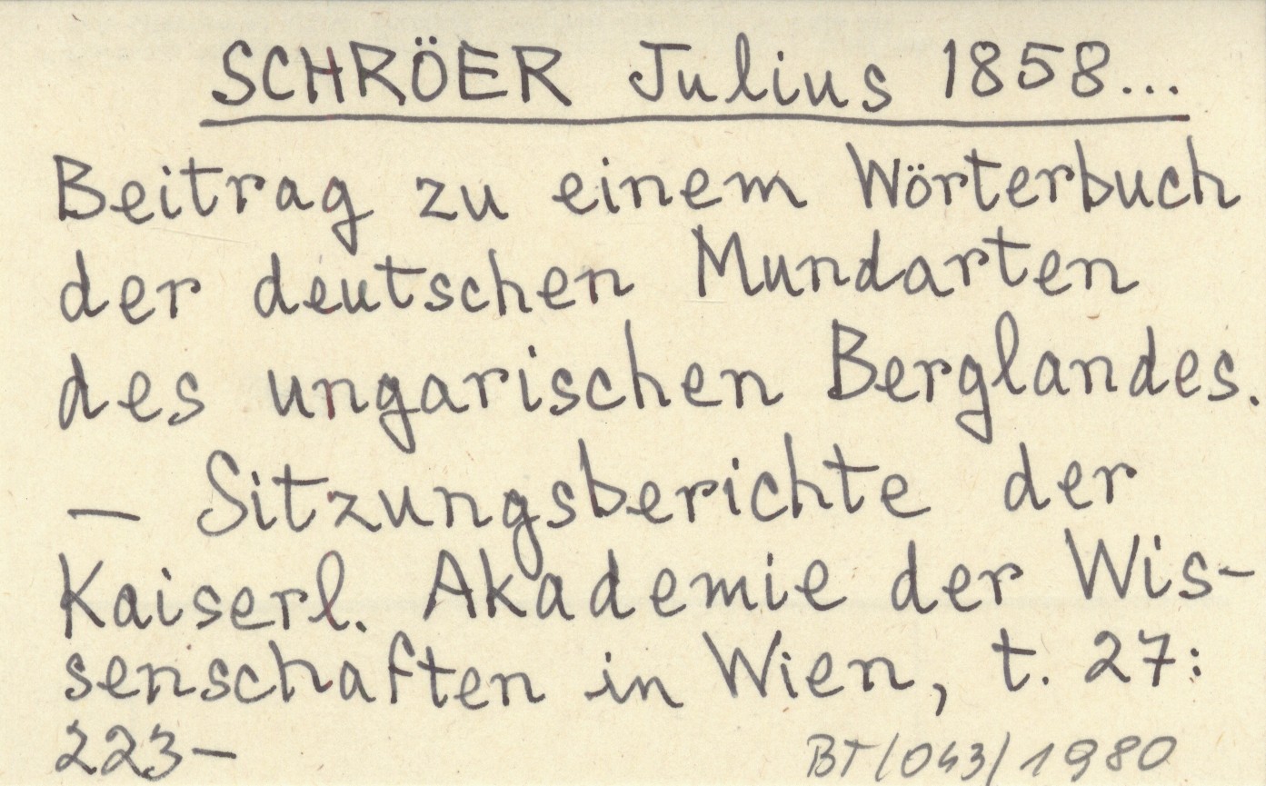 SCHRÖER Julius 1858... Beitrag zu einem Wörterbuch der deutschen Mundarten des ungarischen Berglandes.