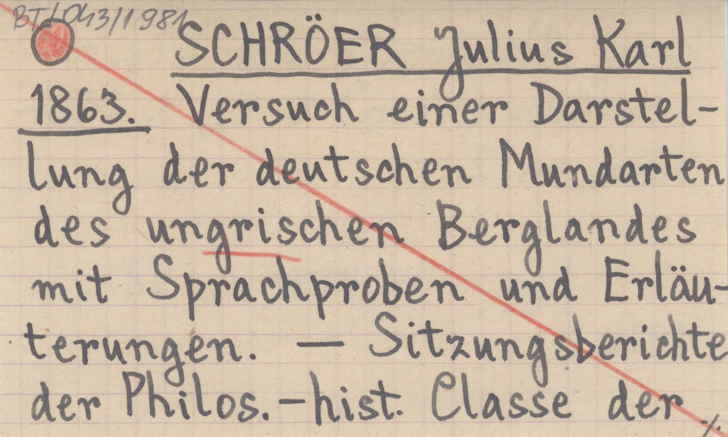 SCHRÖER Julius Karl 1863 Versuch einer Darstellung der deutschen Mundarten des ungrischen Berglandes mit Sprachproben und Erläuterungen.