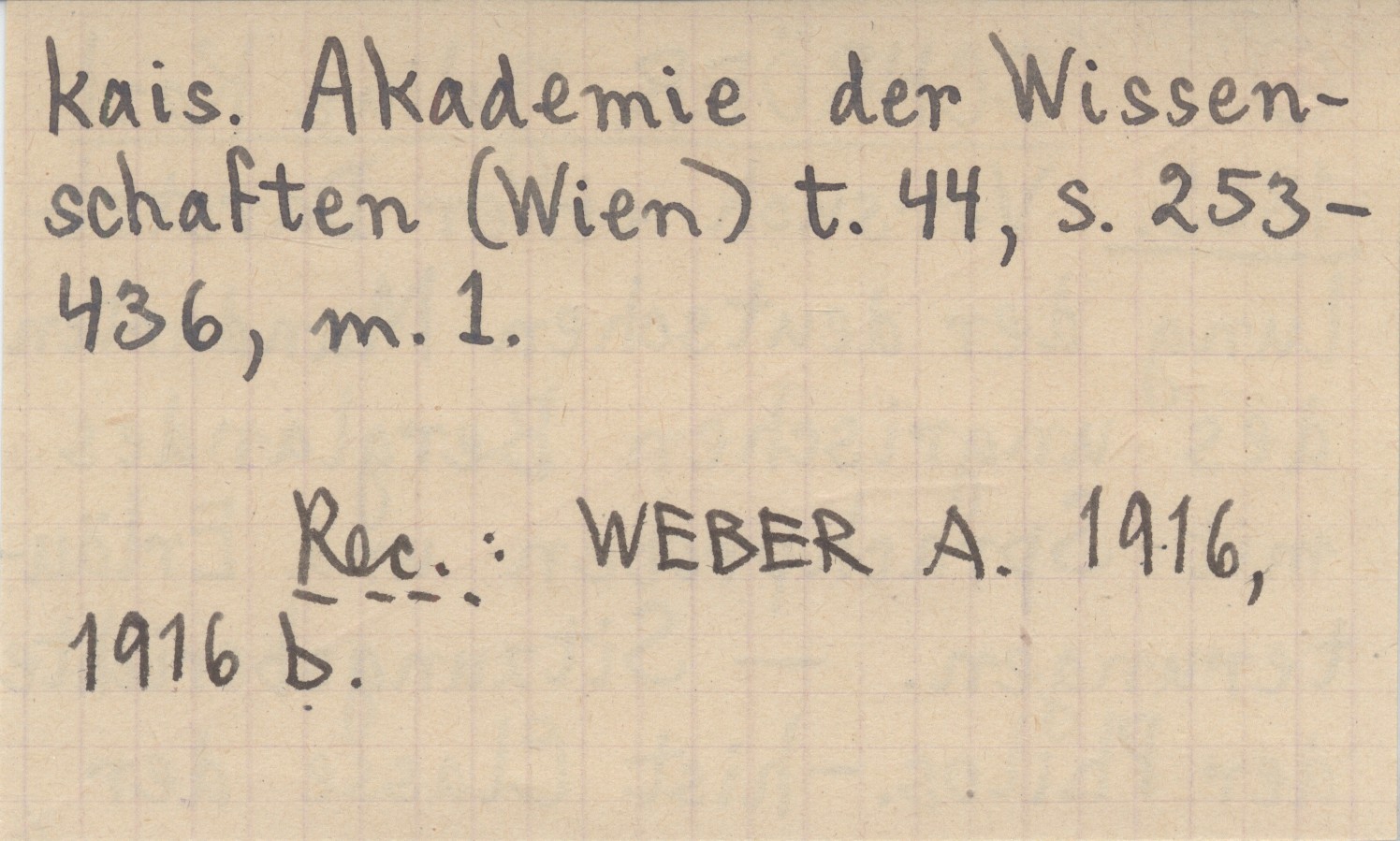 Sitzungsberichte der Philosophisch-historische Classe der kais. Akademie der Wissenschaften (Wien) , T. 44: 253-436, 1 m. REC: WEBER A. 1916, 1916 b.