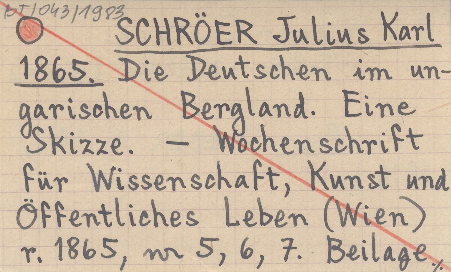 SCHRÖER Julius Karl 1865 Die Deutschen im ingarischen Bergland. Eine Skizze.