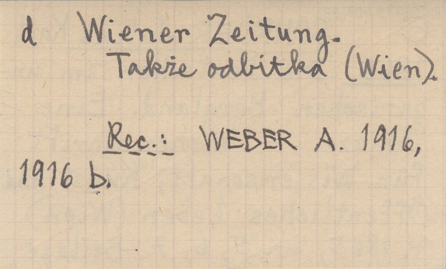 Wochenschrift für Wissenschaften, Kunst und Öffentliches Leben, Beilage d Wiener Zeitung (Wien) , R. 1865, nr 5, 6, 7. Także odbitka (Wien). REC: WEBER A. 1916, 1916 b.