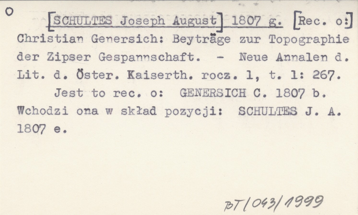 Neue Annalen d. Lit. d. Öster Kaisereth., R. 1, t. 1: 267. [Rec. o:]. Jest to recenzja o: GENERSICH C. 1807 b. Wchodzi ona w skład pozycji: SCHULTES J. A. 1807 e.