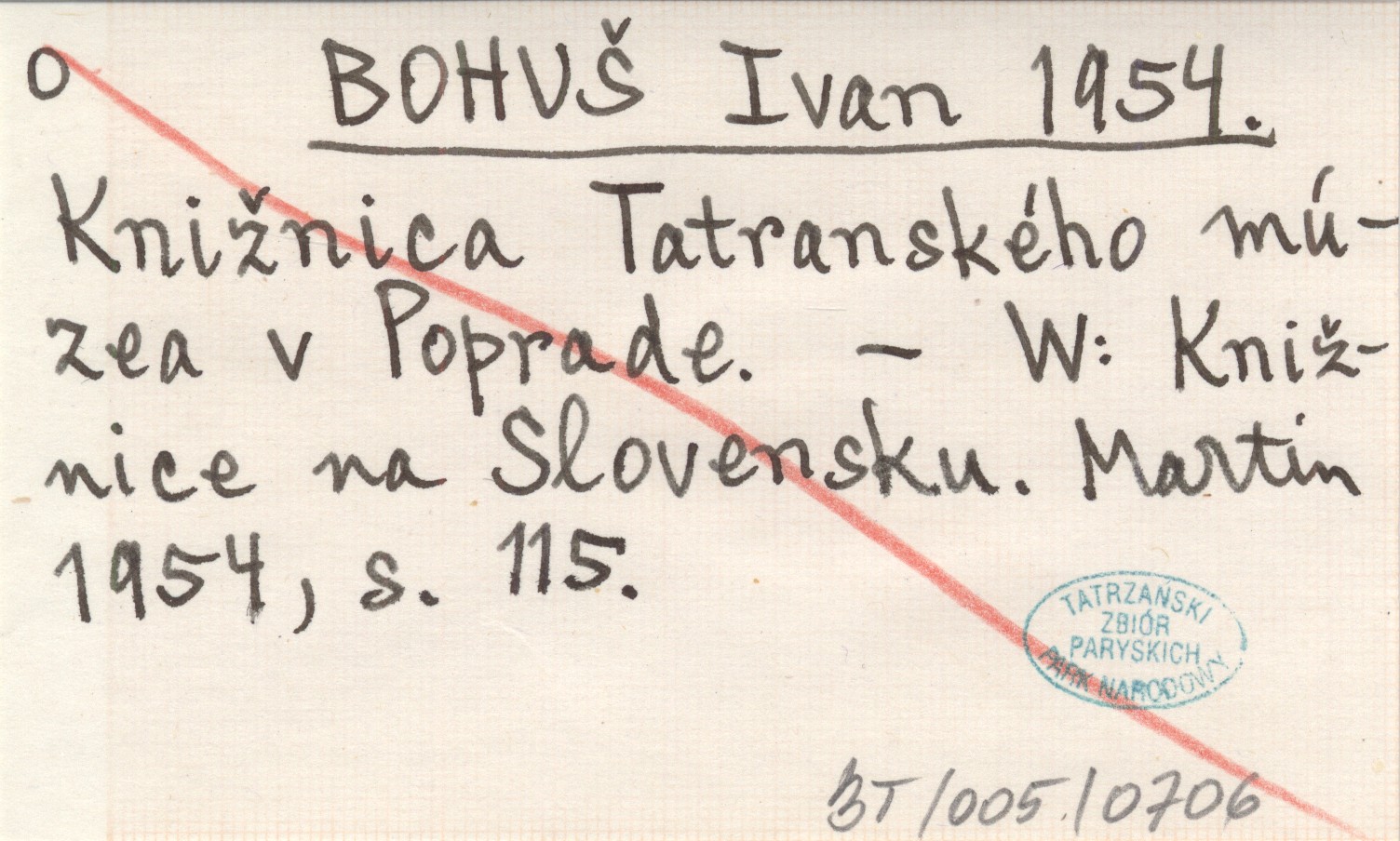 BOHUŠ Ivan 1954 Knižnica Tatranského múzea v Poprade.