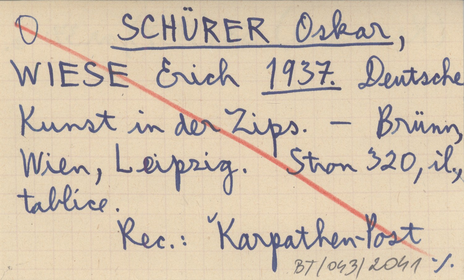 SCHÜRER Oskar WIESE, Erich. ; 1937 Deutsche Kunst in der Zips.