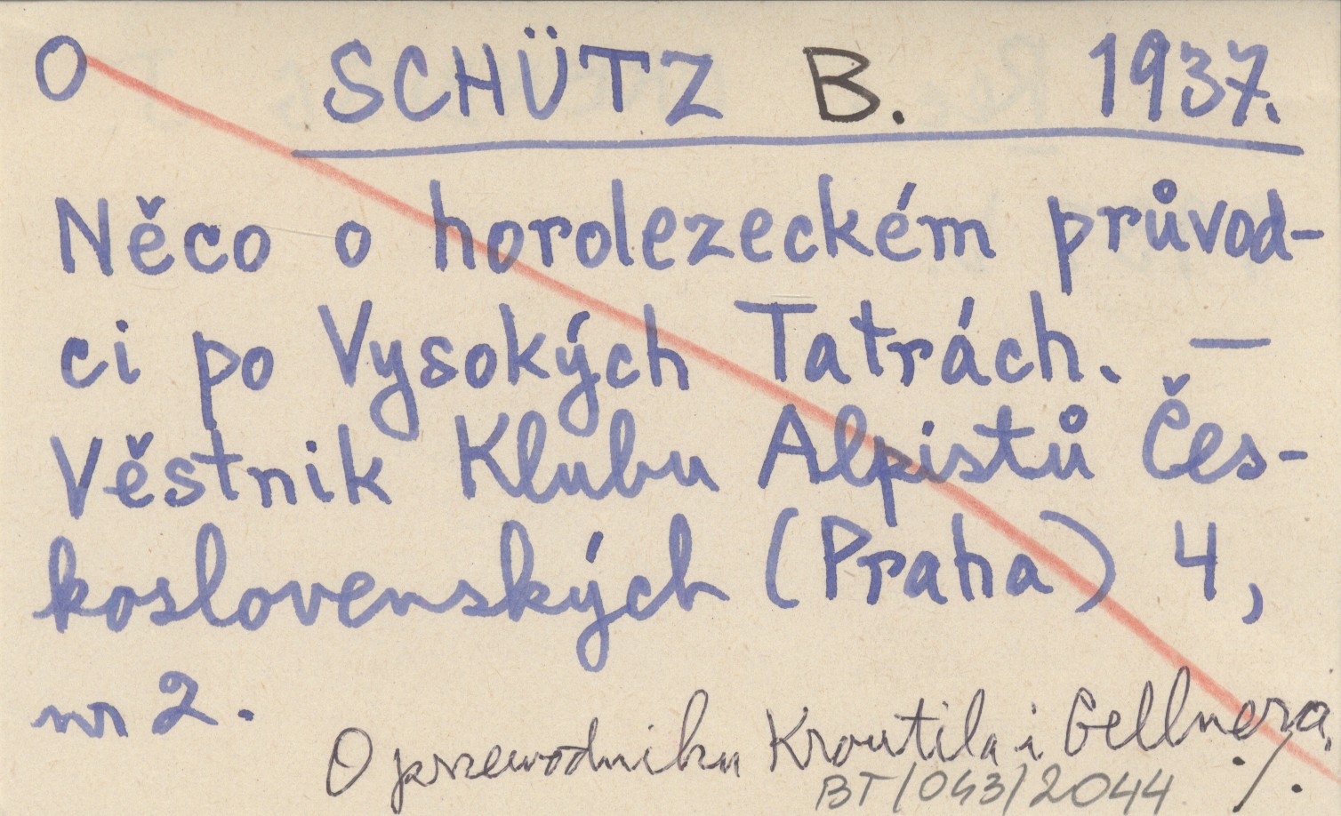 SCHÜTZ B. 1937 Něco o horolezeckém průvodci po Vysokých Tatrách.