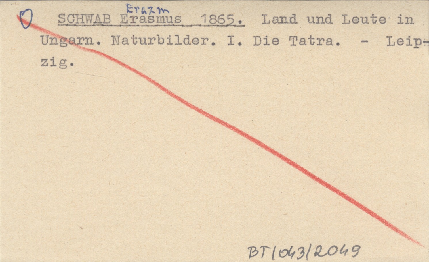 SCHWAB Erasmus [Erazm] 1865 Land und Leute in Ungarn. Naturbilder. I. Die Tatra.