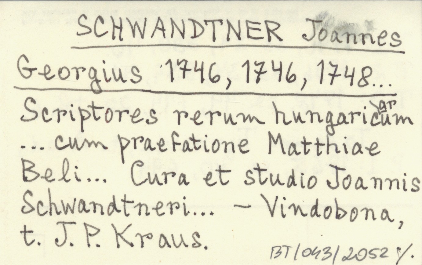 SCHWANDTNER Joannes Georgius 1746,1748... Scriptores rerum hungaricorum ... cum praefatione Matthiae Beli... Cura et studio Joannis Schwandtneri...