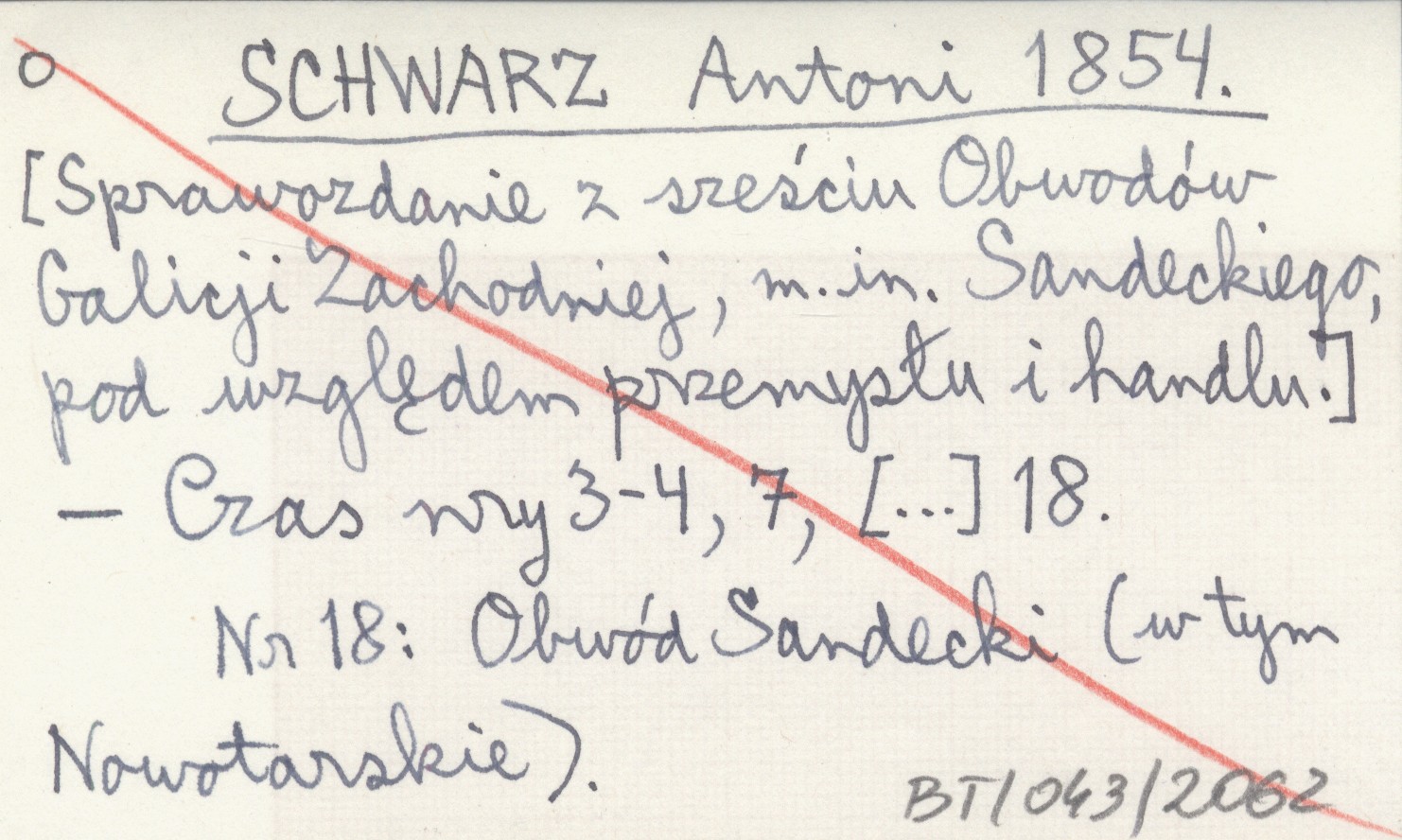 SCHWARZ Antoni 1854 [Sprawozdanie z sześciu Obwodów Galicji Zachodniej, m. in. Sandeckiego, pod względem przemysłu i handlu].