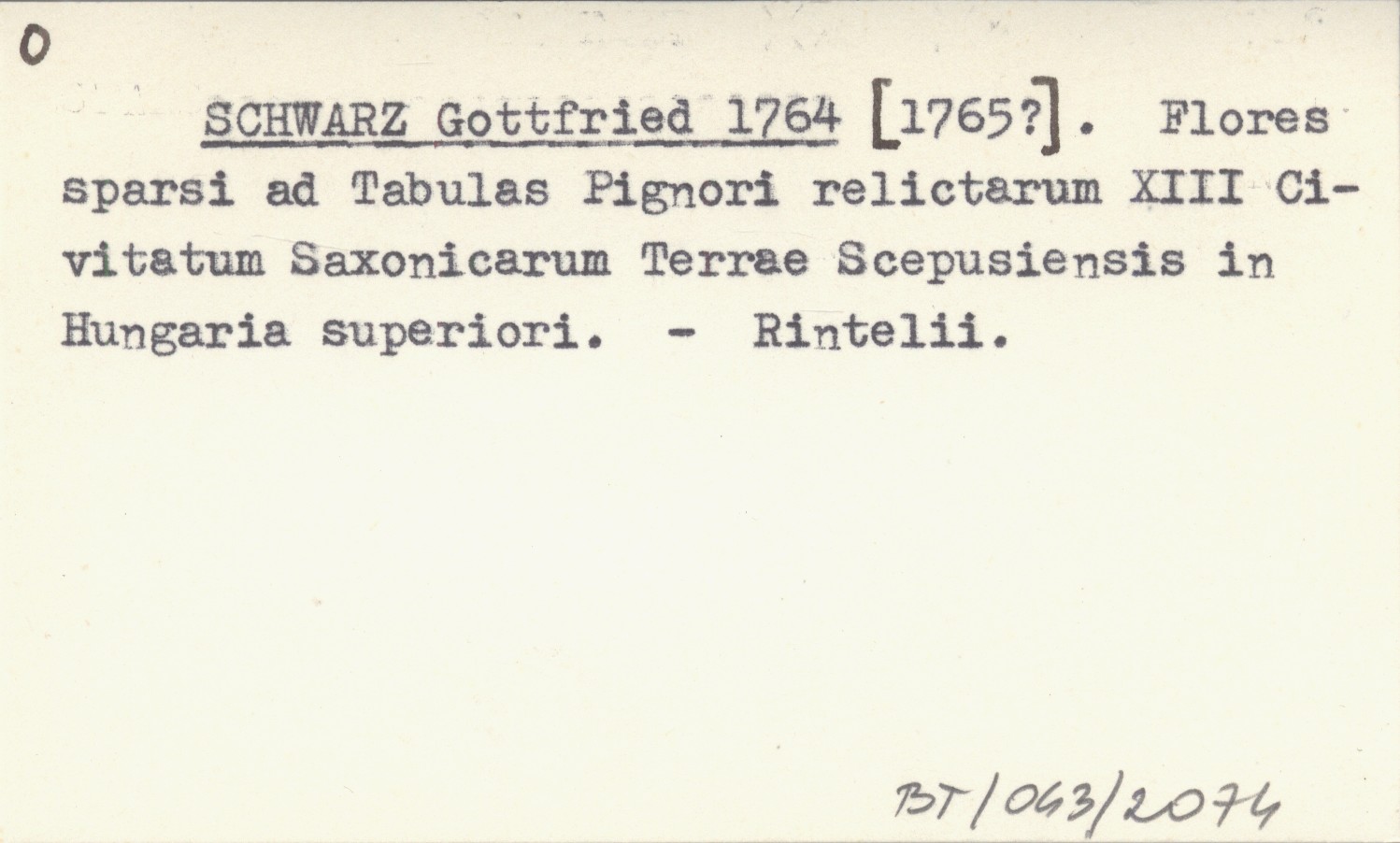 SCHWARZ Gottfried 1764 [1765?] Flores sparsi ad Tabulas Pignori relictarum XIII Civitatum Saxonicarum Terrae Scepusiensis in Hungaria superiori.