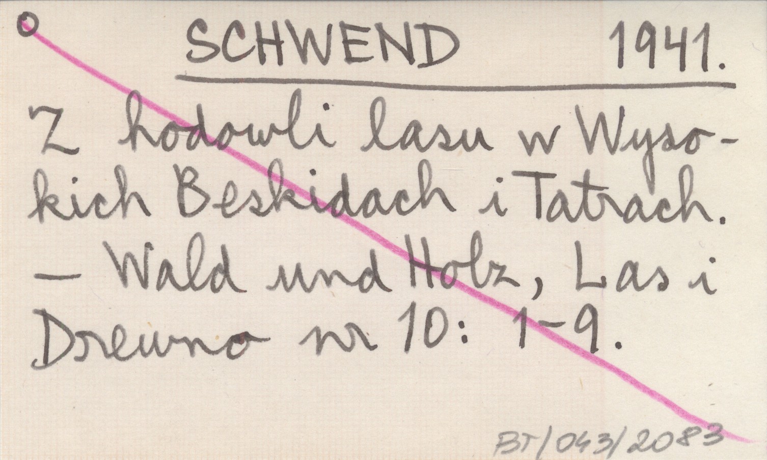 SCHWEND 1941 Z hodowli lasu w Wysokich Beskidach i Tatrach.