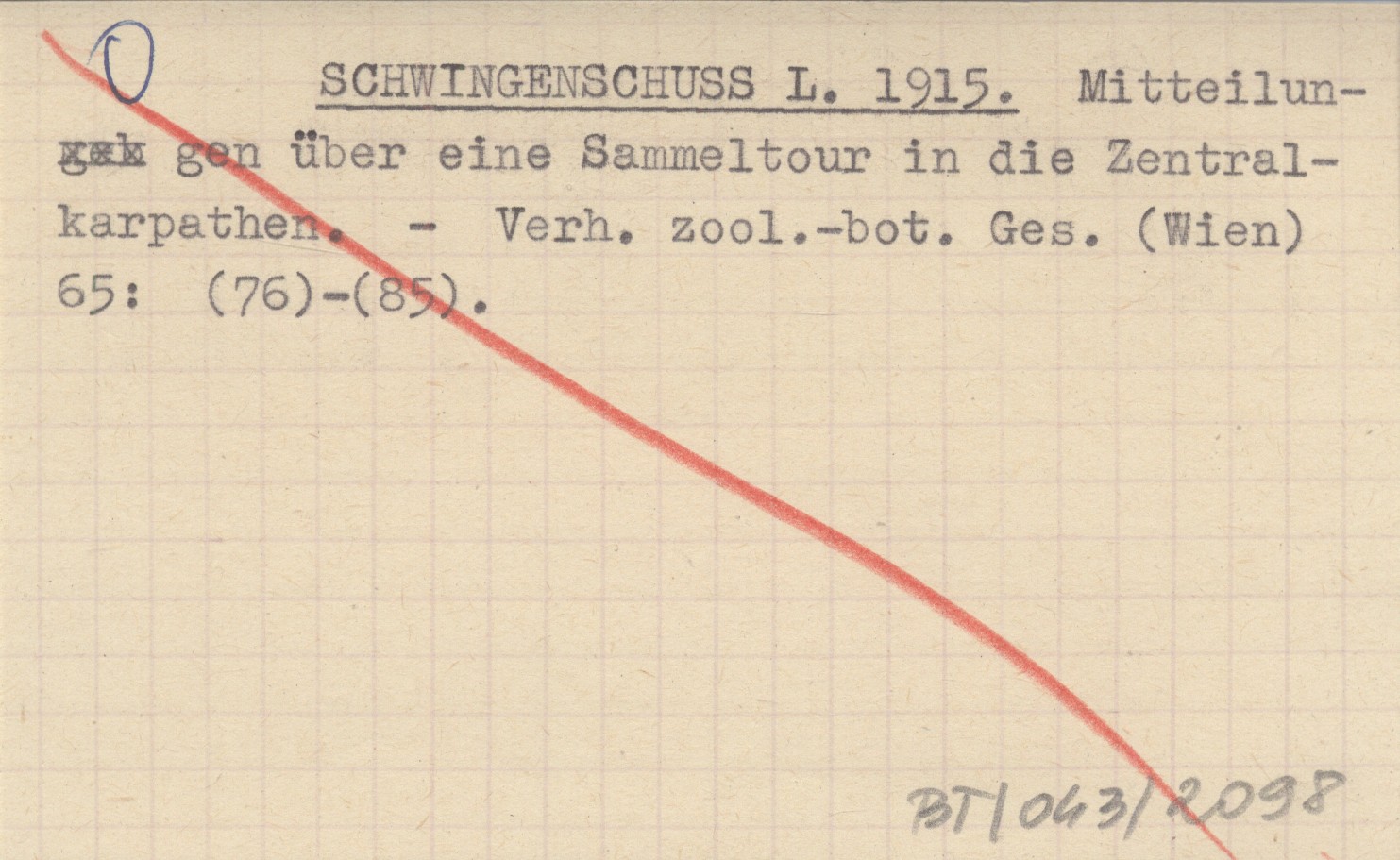 SCHWINGENSCHUSS L. 1915 Mitteilung gen über eine Sammeltour in die Zentralkarpathen.