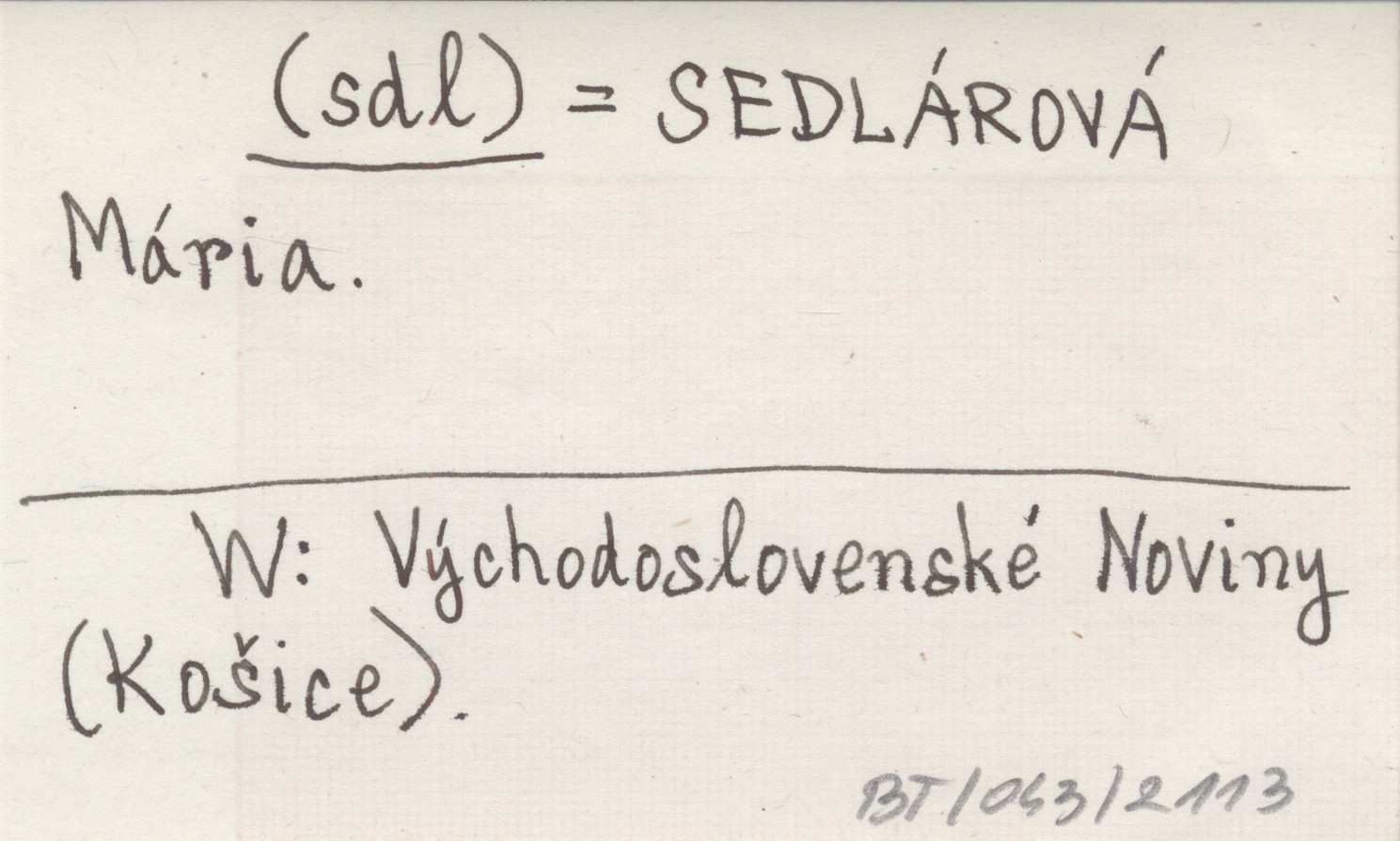 (sdl) SEDLÁROVÁ Mária Východoslovenské Noviny (Košice).