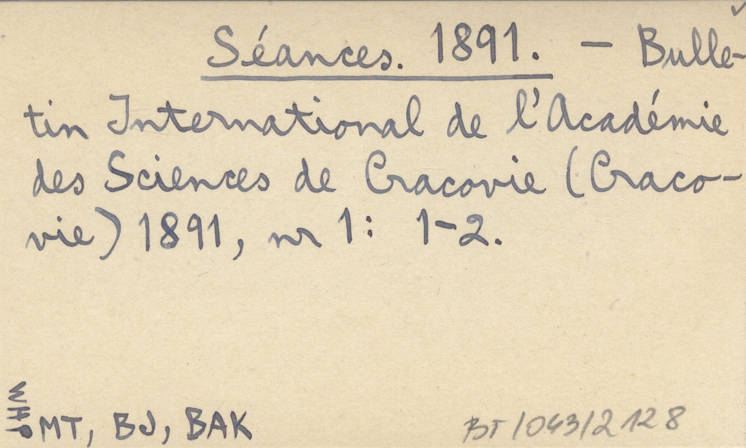 Bulletin International de l'Académie des Sciences de Cracovie (Cracovie) , 1891, nr 1: 1-2.