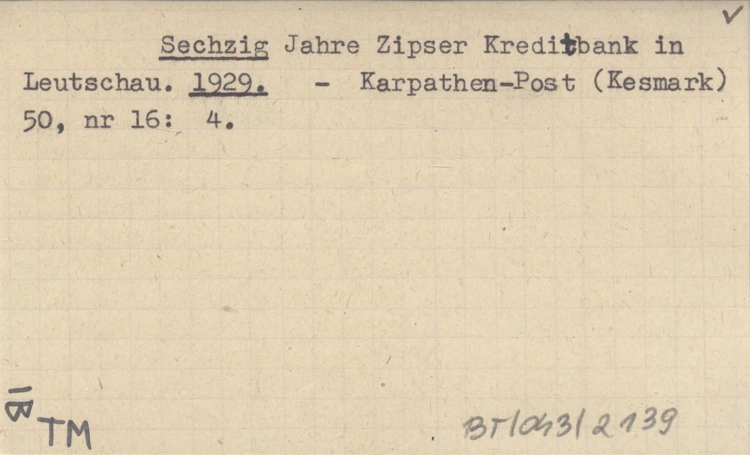 Sechzig Jahre Zipser Kreditbank in Leutschau. 1929