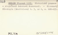 SEDLÁK Vincent 1957 Historické pramene o zbojníkovi Jakubovi Surovcovi.