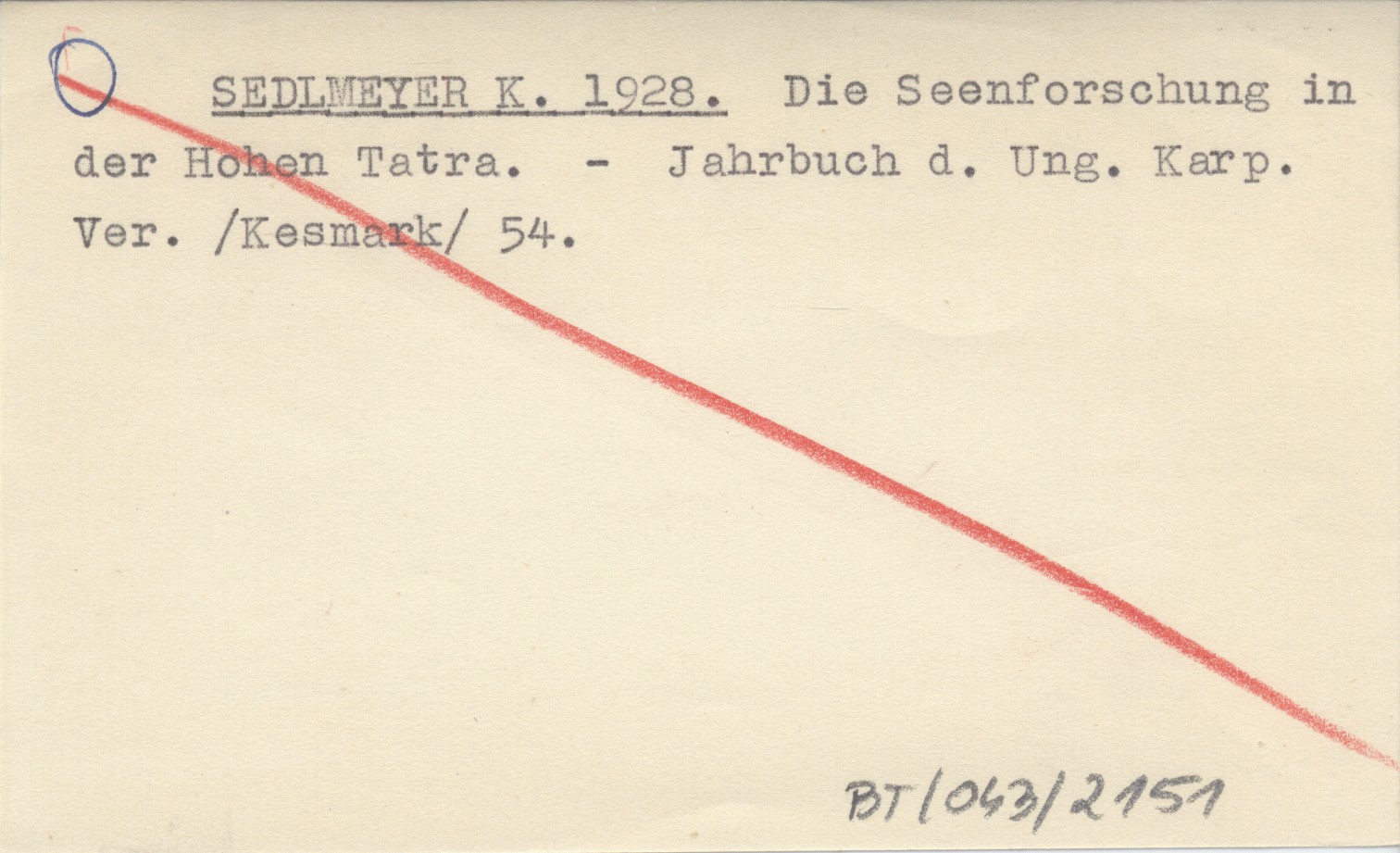 SEDLMEYER K. 1928 Die Seenforschung in der Hohen Tatra.