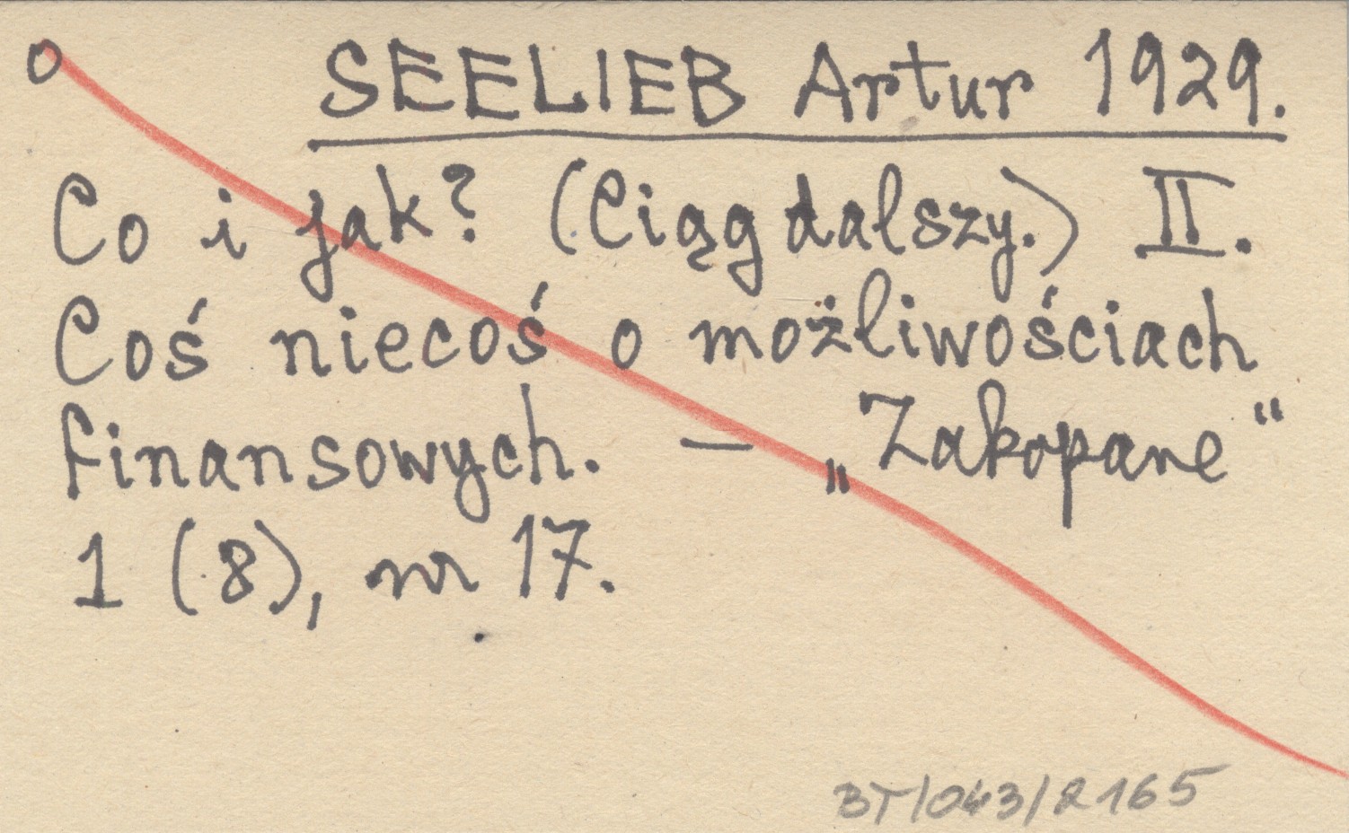 SEELIEB Artur 1929 Co i jak? (Ciąg dalszy). II. Coś niecoś o możliwościach finansowych.