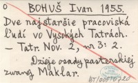 BOHUŠ Ivan 1955 Dve najstaršie pracoviská ľudí vo Vysokých Tatrách.