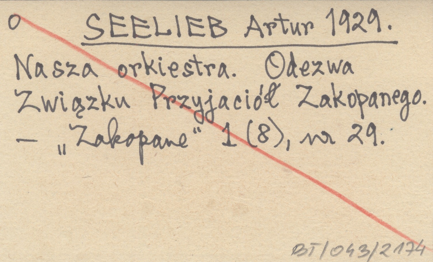 SEELIEB Artur 1929 Nasza orkiestra. Odezwa Związku Przyjaciół Zakopanego.