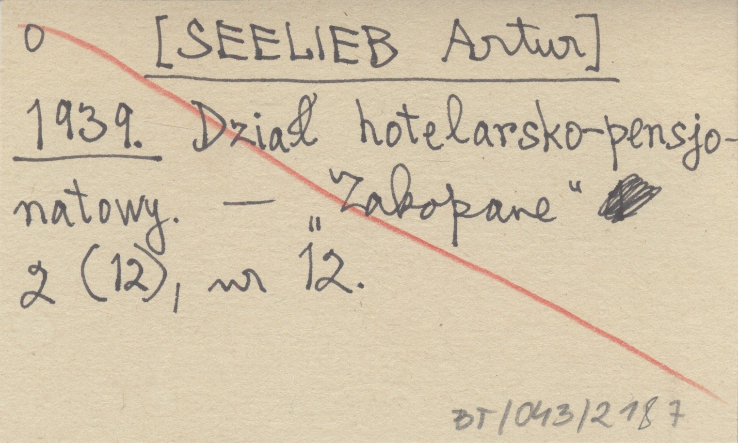 [SEELIEB Artur] 1939 Dział hotelarsko-pensjonatowy.