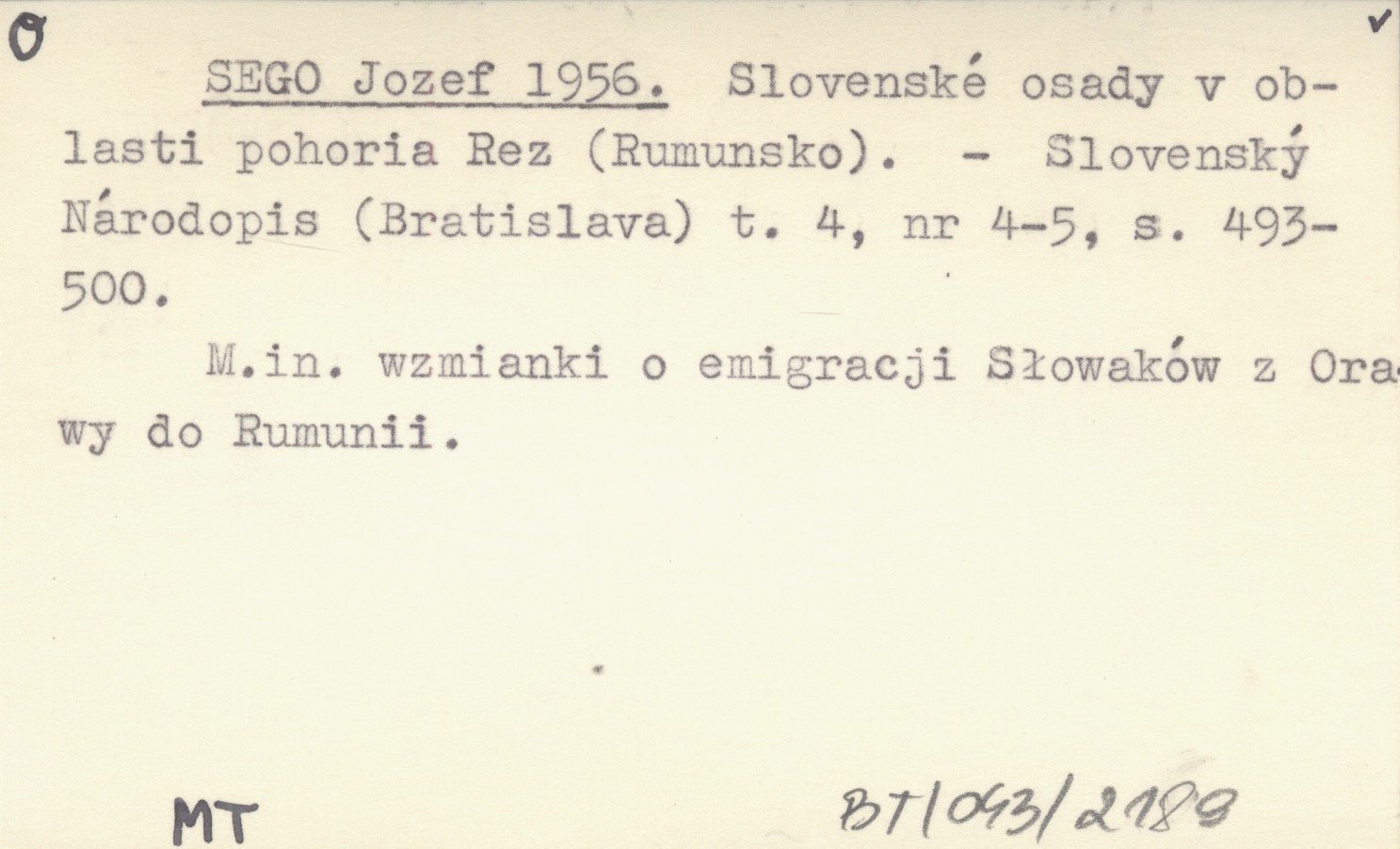 SEGO Jozef 1956 Slovenské osady v oblasti pohoria Rez (Rumunsko).