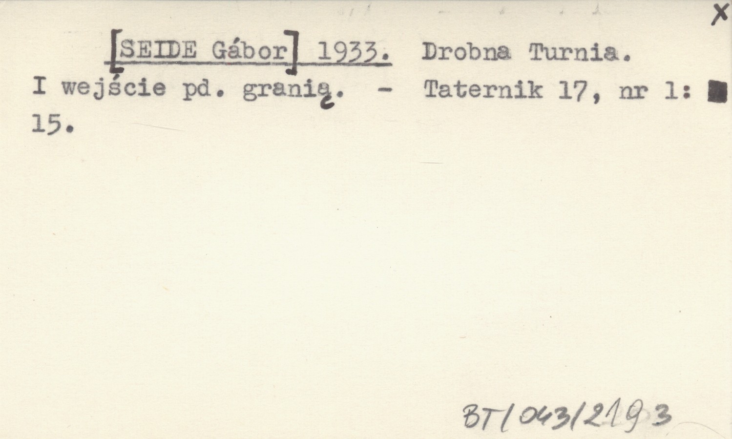 [SEIDE Gábor] 1933 Drobna Turnia. I wejście pd. granią.