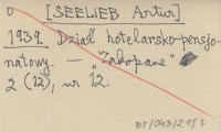 [SEELIEB Artur] 1939 Dział hotelarsko-pensjonatowy.