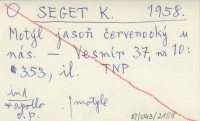 SEGET K. 1958 Motýl jasoň červenooký u nás.