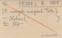 SEIDEL H. 1907 [O nowych mapach Tatr].