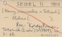 SEIDEL H. 1907 [Nazwy niemieckie w Tatrach].