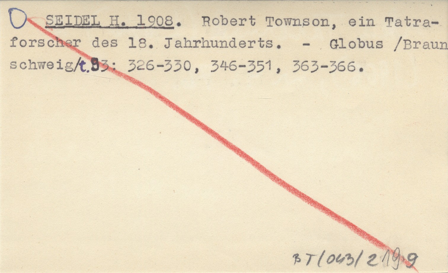SEIDEL H. 1908 Robert Townson, ein Tatraforscher des 18. Jahrhunderts.