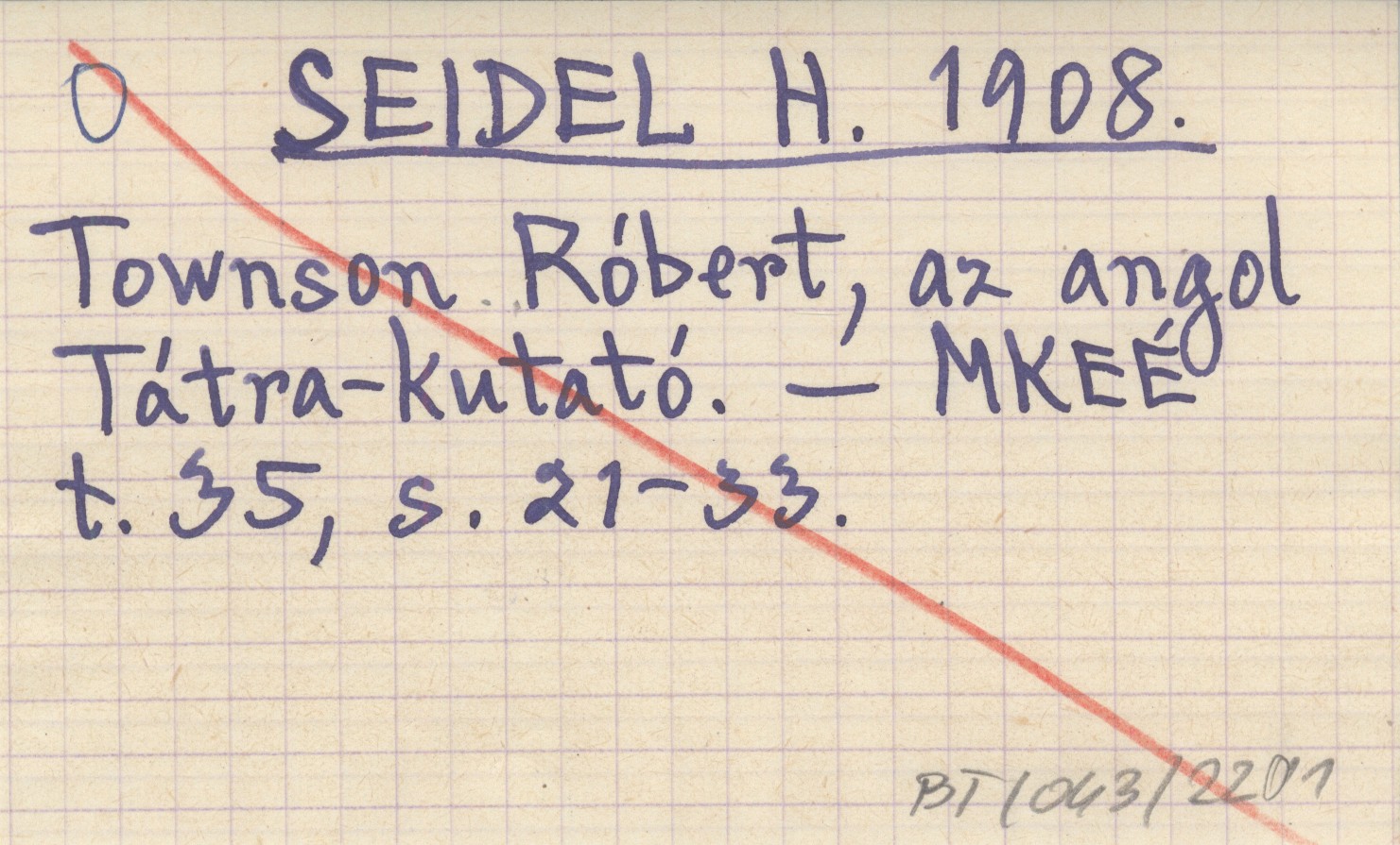 SEIDEL H. 1908 Townson Róbert, ay angol Tátra-kutató.