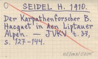 SEIDEL H. 1910 Der Karpathenforscher B. Hacquet in den Liptauer Alpen.