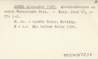 SEIDL Alexander 1926 Abschiedsworte an meine Vaterstadt Bela.