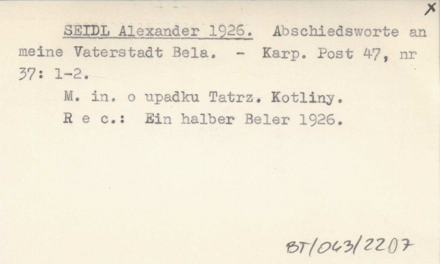 Karpathen-Post, 47, nr 37: 1-2. M. in. o upadku Tatrzańskiej Kotliny. REC: Ein halber Beler 1926.