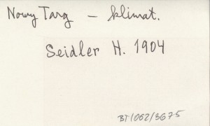 Mitteilungen des Beskidenvereines, 1, nr 3: 36, 38-43, il.; nr 4: 51-58. M. in. dane z Nowego Targu, Zakopanego i Orawskiego Podzamcza.