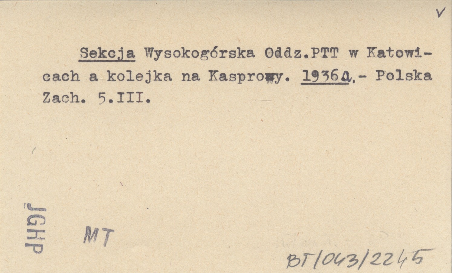 Sekcja Wysokogórska Oddz. PTT w Katowicach a kolejka na Kasprowy. 1936 a