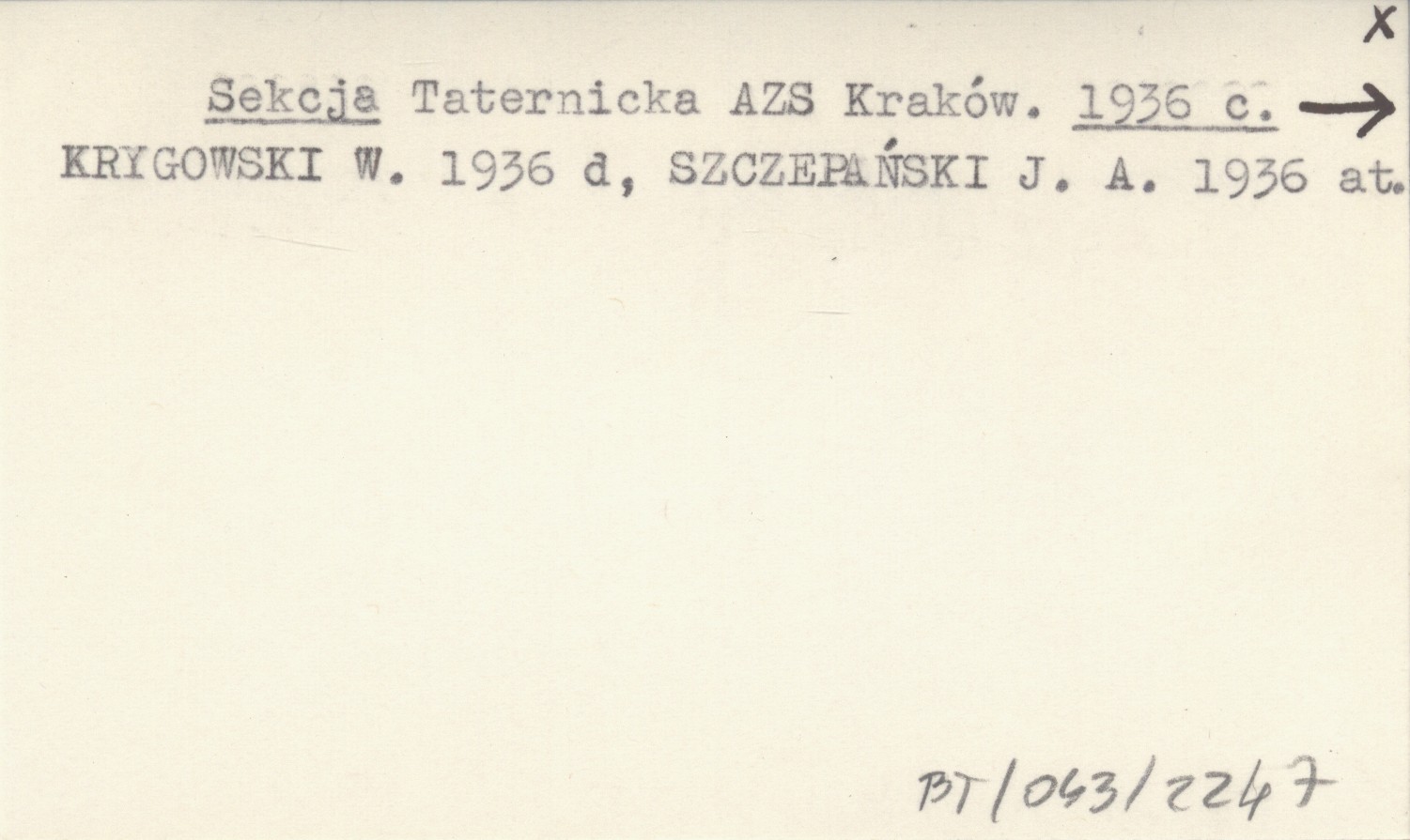 KRYGOWSKi W. 1936 d SZCZEPAŃSKI J. A. 1936 at