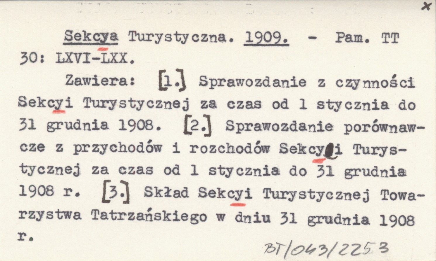 Pamiętnik Towarzystwa Tatrzańskiego, 30: LXVI-LXX. Zawiera: [1.] Sprawozdanie z czynności Sekcyi Turystycznej za czas od 1 stycznia do 31 grudnia 1908. [2.] Sprawozdanie porównawcze z przychodów i rozchodów Sekcyi Turystycznej za czas od 1 stycznia do 31 grudnia 1908 r. [3.] Skład Sekcyi Turystycznej Towarzystwa Tatrzańskiego w dniu 31 grudni 1908 r.