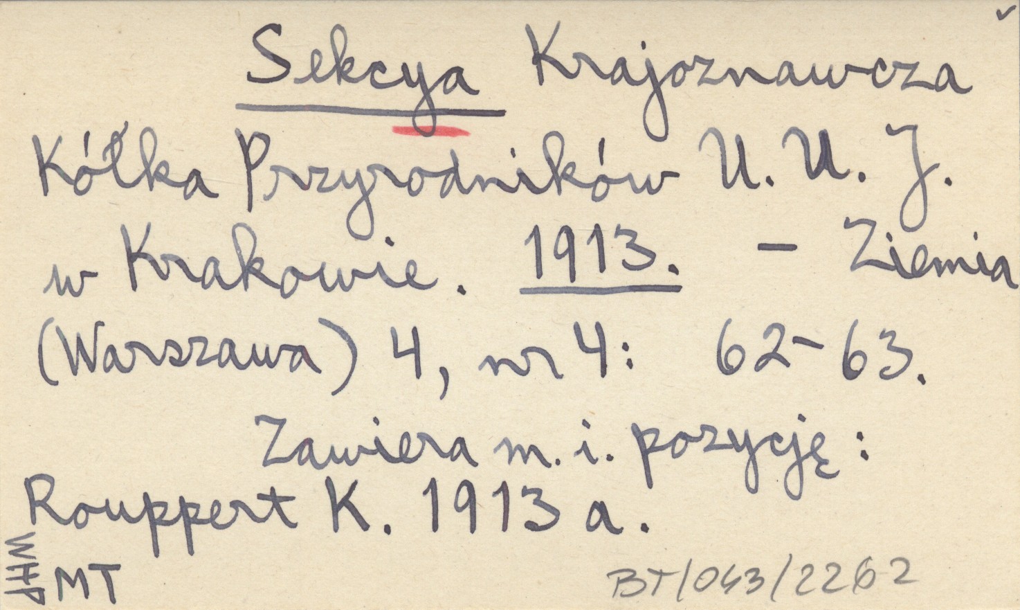 Ziemia (Warszawa) , 4, nr 4: 62-62. Zawiera m. in. pozycję: Rouppert K. 1913 a. Rouppert K. 1913 a