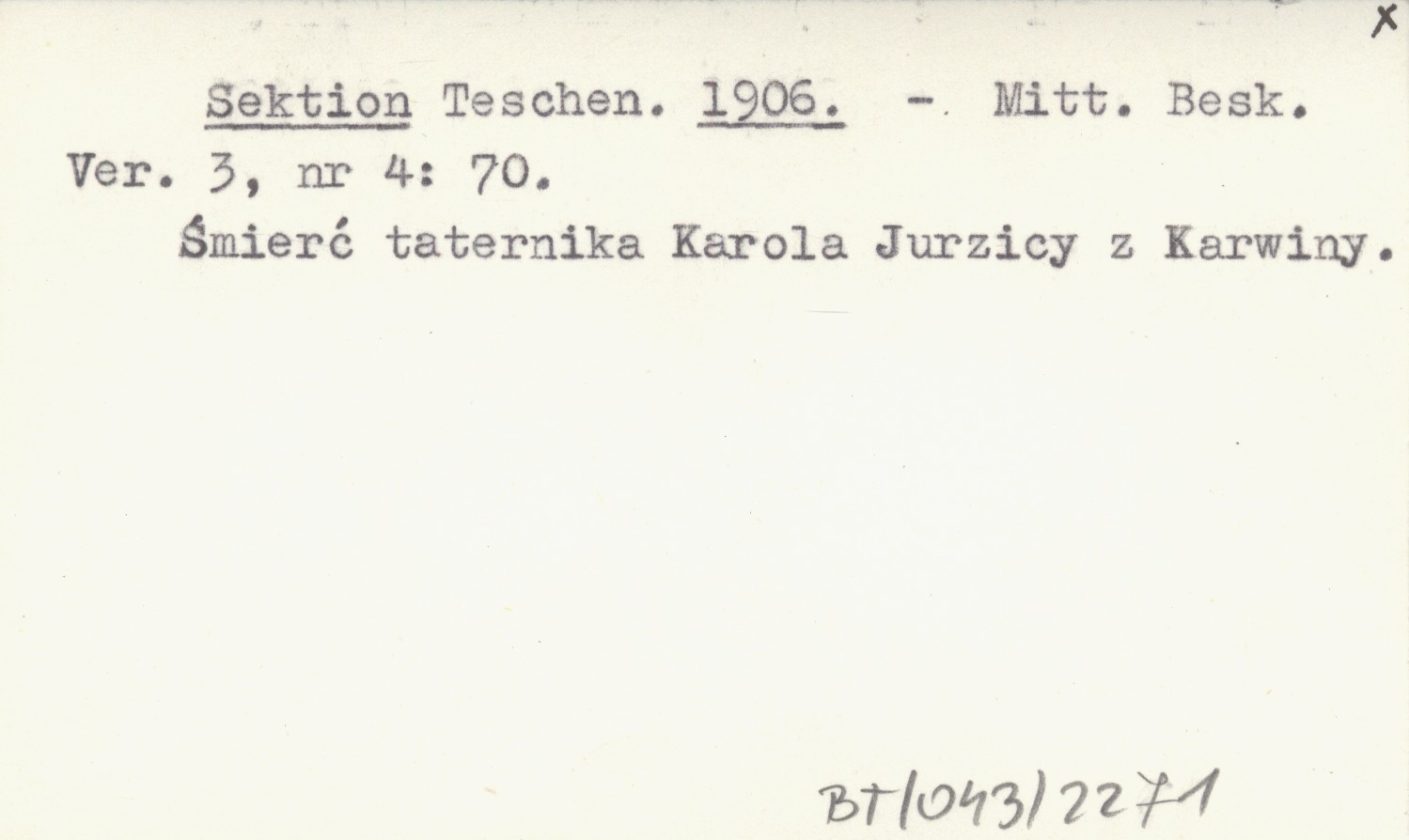 Mitteilungen des Beskidenvereines, 3, nr 4: 70. Śmierć taternika Karola Jurzicy z Karwiny.