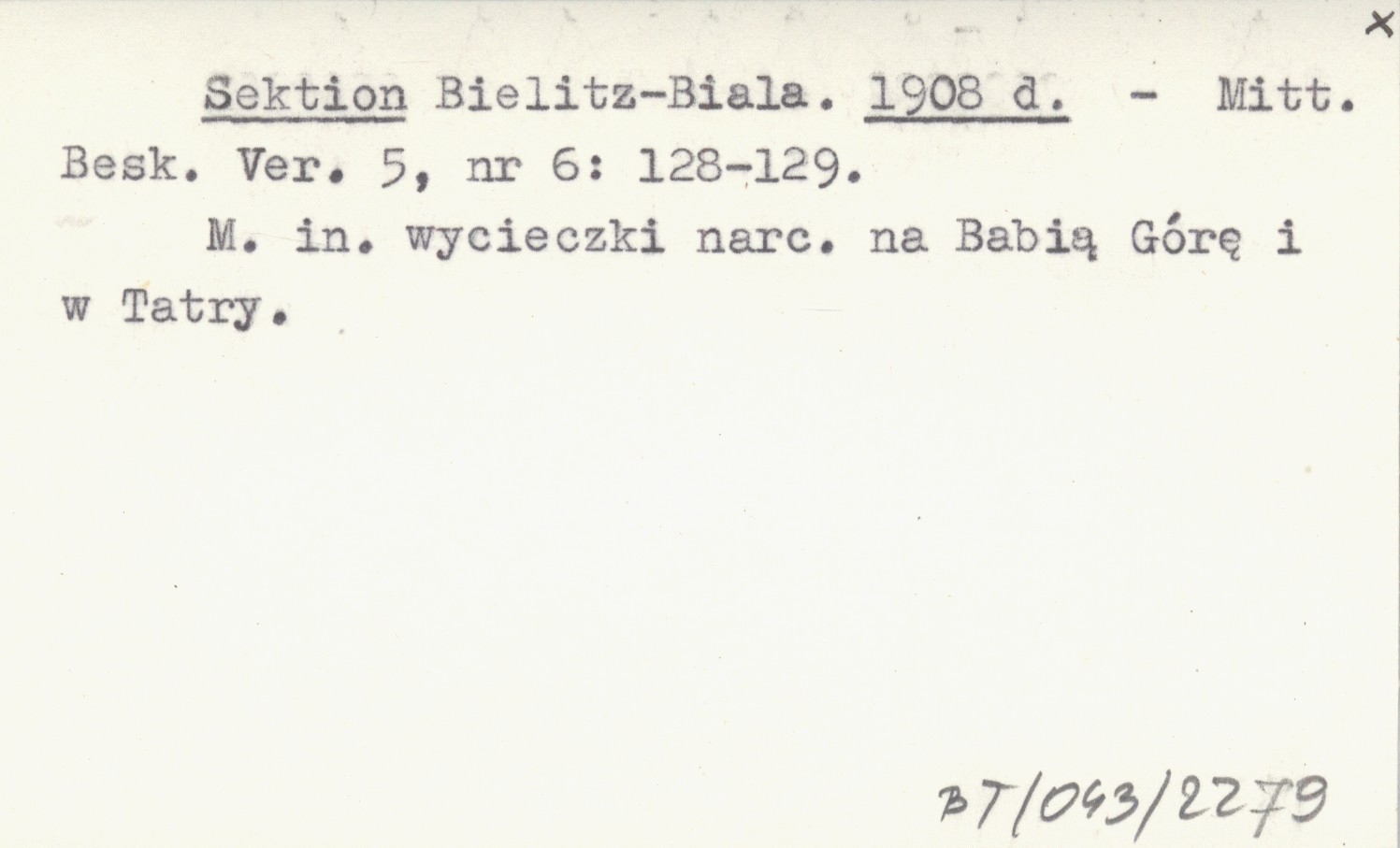 Mitteilungen des Beskidenvereines, 5, nr 6: 128-129. M. in. wycieczki narciarskie na Babią Górę i w Tatry.