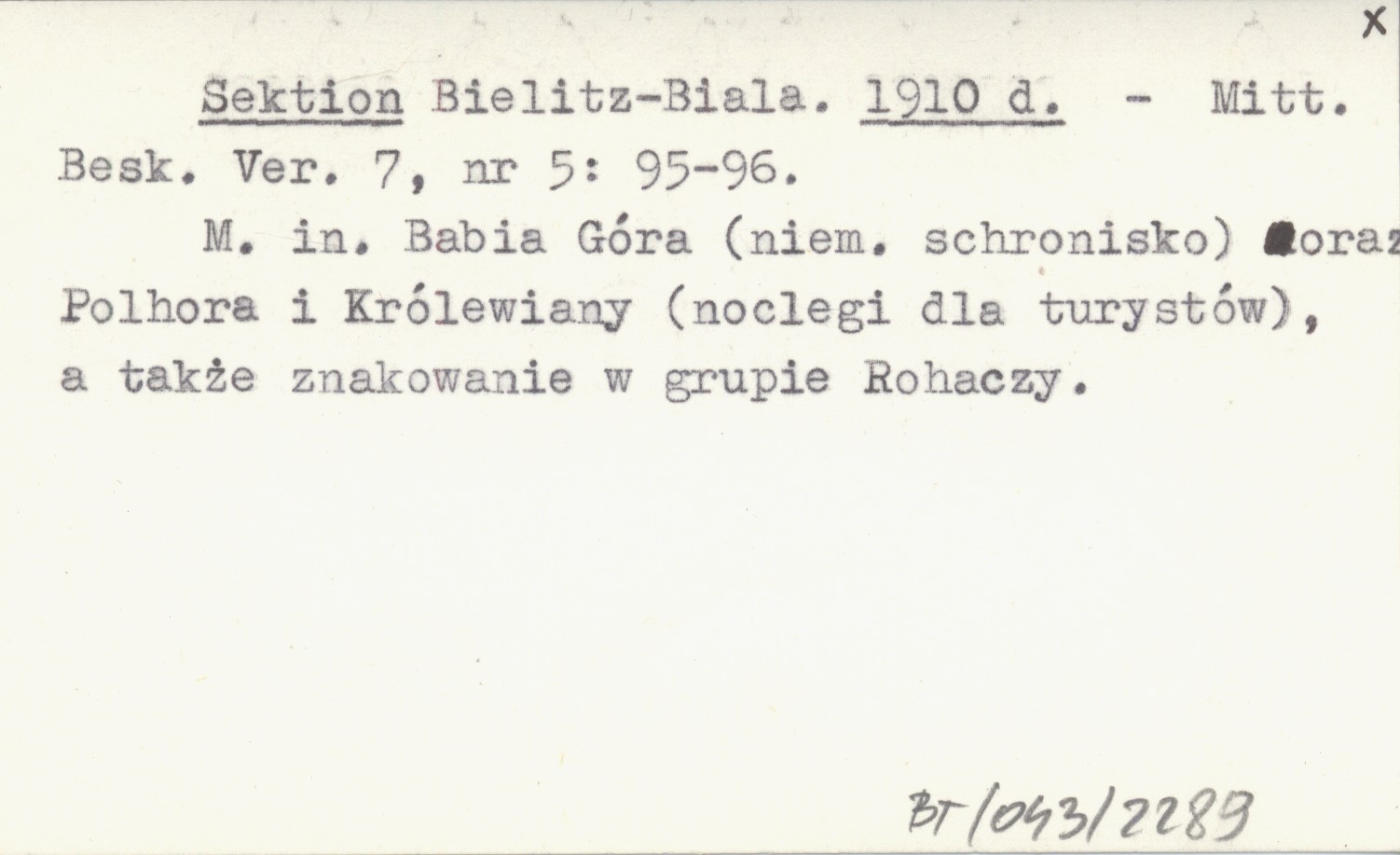 Mitteilungen des Beskidenvereines, 7, nr 5: 95-96. M. in. Babia Góra (niemieckie schronisko) oraz Polhora i Królewiany (noclegi dla turystów), a także znakowanie w grupie Rohaczy.